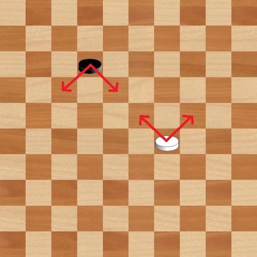 Ordinary pieces or men always move one square diagonally forwards, to an unoccupied square: